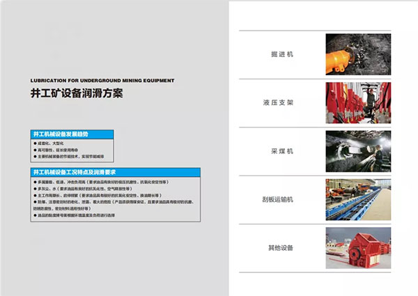 在礦用油脂方面,我們主要基于井工礦及露天礦的機(jī)械潤(rùn)滑體系需求,具備了適合掘進(jìn)機(jī)、液壓支架、采煤機(jī)、刮板機(jī)、碎煤機(jī)、礦井提升機(jī)、梭車(chē)、鉆機(jī)、輪斗挖掘機(jī)、電鏟及自卸卡車(chē)等機(jī)械、車(chē)輛所需的特種油脂。