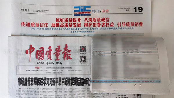 《中國質(zhì)量報》、《中國消費者報》、中國經(jīng)濟網(wǎng)、中國質(zhì)量網(wǎng)、中國消費網(wǎng)等多家權(quán)威媒體均予以集中展示和公告。不僅如此,公司還獲得了“全國質(zhì)量誠信先進企業(yè)”的榮譽稱號,這是需要經(jīng)過中檢協(xié)長達三年的全方位監(jiān)督檢查合格才能獲得的榮譽稱號,其含金量可見一斑!