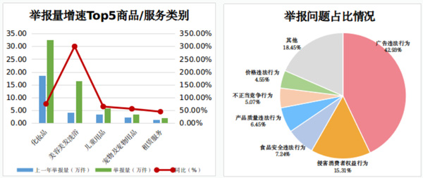 市場監(jiān)管部門堅持民生導(dǎo)向,強(qiáng)化對投訴舉報問題的分析研判,依法嚴(yán)厲查處違法違規(guī)行為。針對廣告違法、虛假宣傳等舉報立案28.11萬件;針對侵害消費者權(quán)益行為舉報立案6.3萬件,主要涉及銷售不符合安全要求產(chǎn)品、假冒偽劣、欺詐消費者等;針對食品安全違法舉報立案4.87萬件。