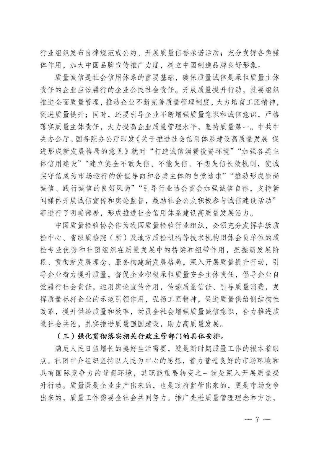 李克強(qiáng)總理批示指出,打造集質(zhì)量、標(biāo)準(zhǔn)、技術(shù)、品牌等于一體的高品質(zhì)產(chǎn)品和服務(wù),在市場(chǎng)競(jìng)爭(zhēng)中鍛就中國質(zhì)量、培育中國精品。倡導(dǎo)企業(yè)對(duì)產(chǎn)品和服務(wù)質(zhì)量作出誠信倡議,也是中國質(zhì)量檢驗(yàn)協(xié)會(huì)自2004年以來組織開展全國“質(zhì)量月”企業(yè)質(zhì)量誠信倡議專題活動(dòng)的要義。謹(jǐn)期社會(huì)各界共同努力,推進(jìn)質(zhì)量社會(huì)共治,抓好產(chǎn)品和服務(wù)的高品質(zhì)質(zhì)量提升,共同為我們的質(zhì)量強(qiáng)國事業(yè)去奮斗!