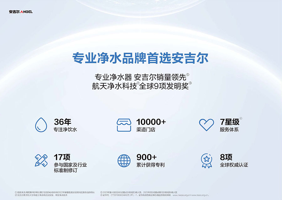 安吉爾成立于1987年,總部設(shè)立于廣東深圳。該品牌深耕凈水領(lǐng)域38年,其專業(yè)凈水器產(chǎn)品銷量持續(xù)領(lǐng)先。目前該企業(yè)已構(gòu)建超10000家渠道門店網(wǎng)絡(luò),其中包含近2000家專賣店,產(chǎn)品暢銷全球65個國家,累計服務(wù)超500萬活躍用戶。