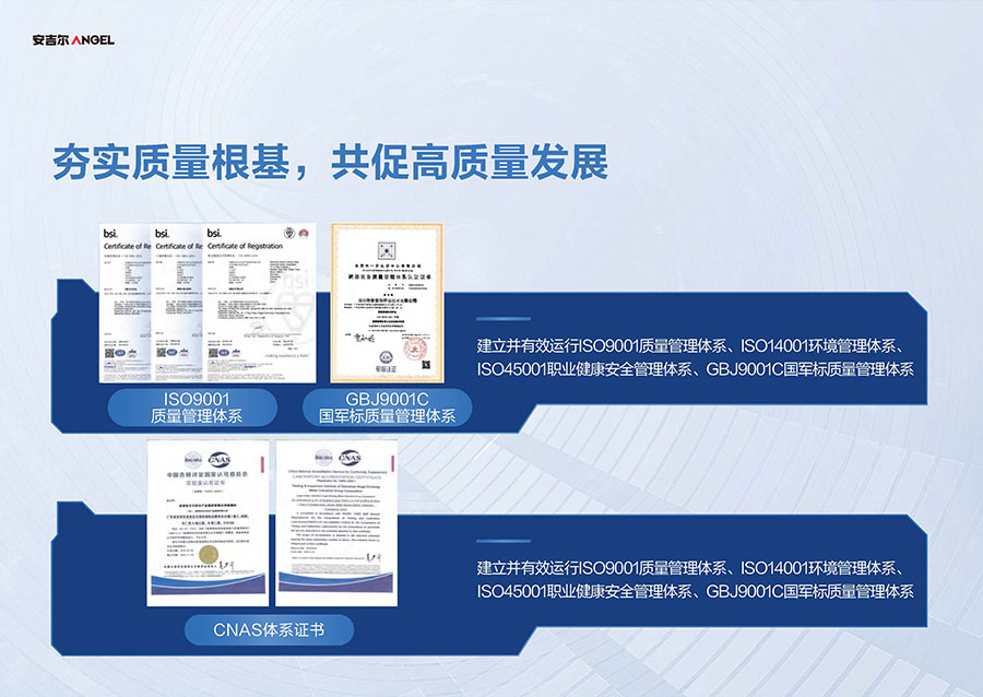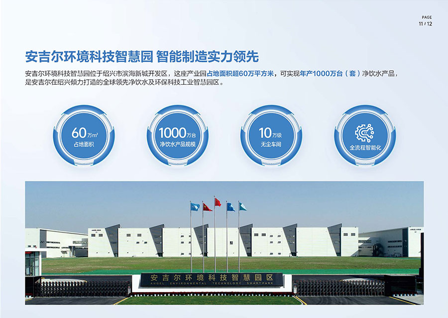 安吉爾布局三大生產(chǎn)基地,其中安吉爾環(huán)境科技智慧園占地面積逾60萬平方米,具備年產(chǎn)1000萬臺(套)凈飲水產(chǎn)品的制造能力。生產(chǎn)體系已獲得中國CQC、美國UL、加拿大CSA等全球八項權(quán)威認(rèn)證機(jī)構(gòu)認(rèn)可。