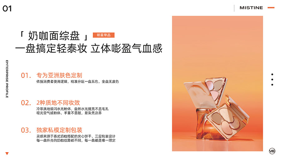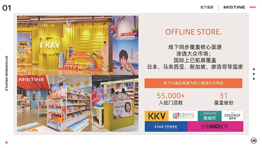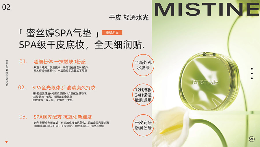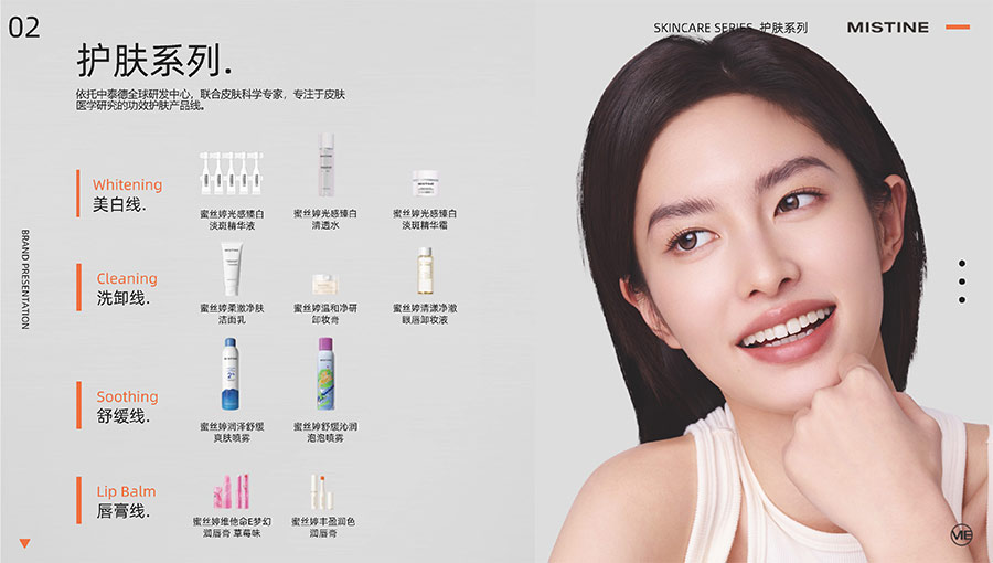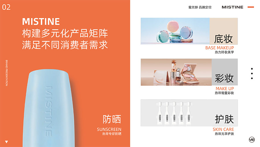 主要產(chǎn)品:MISTINE蜜絲婷防曬、美妝、底妝、彩妝、護膚、香水、個護等產(chǎn)品