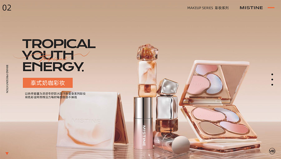 MISTINE蜜絲婷1988年始源于泰國,作為知名國際美妝品牌,擁有37年科研底蘊,產(chǎn)品種類涵蓋防曬、美妝、護膚、香水、個護五大類,擁有近6000多個單品暢銷全球20多個國家,專注為全球女性提供豐富、安全、高品質(zhì)的美妝產(chǎn)品。自2016年進入中國后,MISTINE蜜絲婷以“熱帶青春能量美妝”為品牌定位,為年輕人打造更懂得他們的全新美妝產(chǎn)品,并傳遞獨特的健康活力生活方式。
