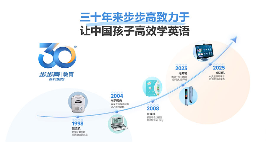 歷經(jīng)30年發(fā)展,“步步高”品牌先后推出了復讀機、點讀機、學習機、家教機、智能學習平板、詞典筆等經(jīng)典產(chǎn)品,深受家長和學生認可,是中國電教行業(yè)領先品牌。