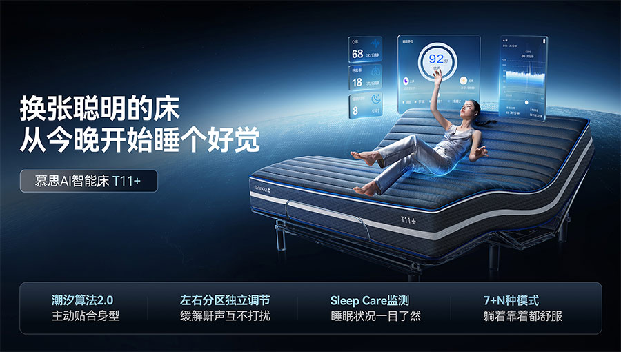 創(chuàng)立之初,慕思就創(chuàng)新性地提出了“量身定制健康睡眠系統”的商業(yè)模式,憑借“量身定制個人專屬的健康睡眠系統”推動傳統寢具行業(yè)的發(fā)展。慕思健康睡眠系統現已更新至第八代T11智能睡眠系統,在睡眠垂直領域積累超過百萬數據,形成一套“潮汐算法”,提供個性化的睡眠建議和改善方案,幫助用戶改善睡眠質量。