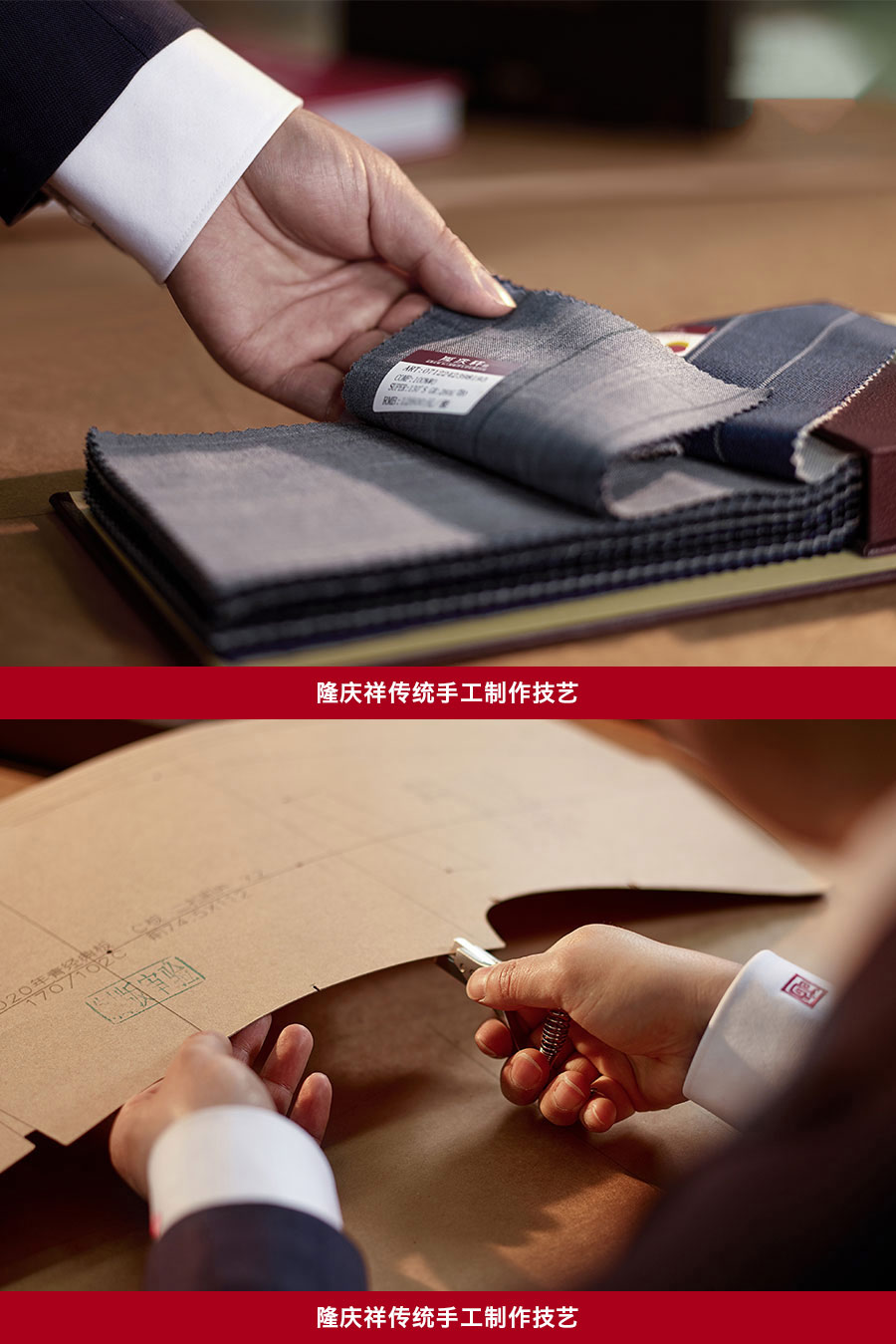 隆慶祥以量身定制為核心特色,提供從面料選擇、款式設(shè)計到工藝優(yōu)化、售后服務(wù)的全程服務(wù),產(chǎn)品均為“單人單版、單版單裁、單裁單做”,以獨一無二的專屬性彰顯尊貴榮耀。每套西裝定面料、定款式、制版、裁剪、制作、試樣、后道整理、取件共八道工序,均采用406道工序,而且大量工序是手工制作。產(chǎn)品均“單人單版、單版單裁、單裁單做”,以獨一無二的專屬性彰顯尊貴榮耀。