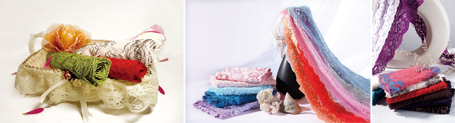 主要產(chǎn)品有高中檔彈性和非彈性花邊、彈性網(wǎng)布、彈性花邊面料、蕾絲等,用于高檔面料裝飾。通過EAT軟件設(shè)計系統(tǒng),也可根據(jù)客戶需求進(jìn)行自主設(shè)計開發(fā)各種花型工藝。公司生產(chǎn)的產(chǎn)品花樣獨特、工藝花型美觀大方,所采用原材料及后整理加工全部采用國際環(huán)保要求的原料及染化料,產(chǎn)品完全符合出口要求,產(chǎn)品在國內(nèi)外占有重要市場,且暢銷歐美、日本、東南亞等國家。