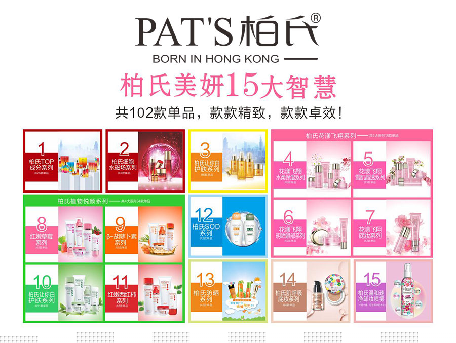 柏氏1983年誕生于東方時(shí)尚之都——香港,1991年,柏氏正式進(jìn)駐中國(guó)內(nèi)陸發(fā)展。發(fā)展至今,柏氏已擁有水磁場(chǎng)、砰砰、讓你白、煥顏、花漾飛翔、植物悅顏、雪妃、水庫、雪晶靈、男士、底妝、防曬等系列。柏氏致力于美容事業(yè)已30多年,基于對(duì)東方女性皮膚的深刻了解,以“為東方女性創(chuàng)造個(gè)性之美,生命之美”為己任,憑著不懈的努力和誠意的溝通,柏氏一直致力于滿足廣大女性的肌膚護(hù)理需求。專為亞洲肌膚研制真正適合亞洲膚質(zhì)的護(hù)膚品。30多年來,柏氏致力于亞洲肌膚的研究,完美破譯亞洲肌膚護(hù)理密碼,旨在提供真正適合亞洲膚質(zhì)的護(hù)膚品。
