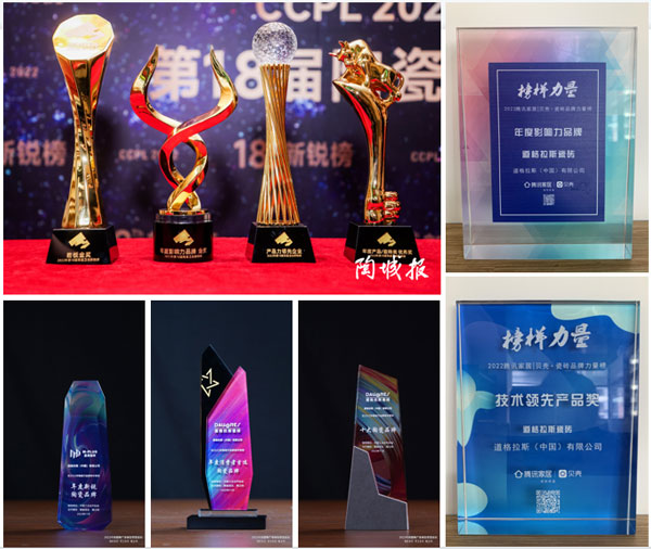 年初,道格拉斯便獲得了“全國質(zhì)量檢驗(yàn)穩(wěn)定合格產(chǎn)品”、“全國質(zhì)量信譽(yù)保障產(chǎn)品”、“全國產(chǎn)品和服務(wù)質(zhì)量誠信領(lǐng)先品牌”、“全國瓷磚行業(yè)質(zhì)量領(lǐng)先企業(yè)”、“全國瓷磚行業(yè)質(zhì)量領(lǐng)先品牌”和“全國產(chǎn)品和服務(wù)質(zhì)量誠信示范企業(yè)”六項(xiàng)國家級質(zhì)量認(rèn)證。隨后,道格拉斯不斷地獲得行業(yè)的嘉許,包括新銳榜“影響力品牌金獎”、“產(chǎn)品力領(lǐng)先企業(yè)”、“年度產(chǎn)品優(yōu)秀獎(數(shù)碼釉—簡素時光系列)”、“榮獲巖板金獎(1200*2600*9原素系列)”;《榜樣力量》騰訊家居|貝殼·瓷磚品牌盛典“年度影響力品牌”、“技術(shù)領(lǐng)先產(chǎn)品獎”;陶瓷行業(yè)年度榜單“十大陶瓷品牌”及“年度消費(fèi)者首選陶瓷品牌”;中國意大利陶瓷設(shè)計(jì)大賽“創(chuàng)意優(yōu)秀獎(意尚瓷磚-恒久系列)”等多個獎項(xiàng)。