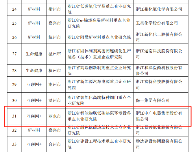 日前,浙江省科學技術廳公示了2023年擬認定省重點企業(yè)研究院名單。其中,浙江中廣電器集團股份有限公司的“浙江省智能物聯(lián)低碳熱泵環(huán)境設備重點企業(yè)研究院”成功入選省重點企業(yè)研究院。
