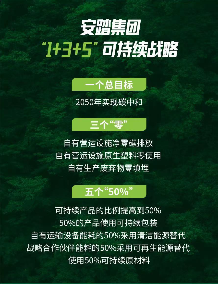 據(jù)了解,安踏集團(tuán)將可持續(xù)發(fā)展作為公司未來(lái)十年核心發(fā)展戰(zhàn)略之一,連續(xù)8年發(fā)布ESG報(bào)告,并制定了“1+3+5”可持續(xù)戰(zhàn)略藍(lán)圖,成立可持續(xù)發(fā)展委員會(huì),助力ESG戰(zhàn)略實(shí)際落地與實(shí)施,在業(yè)務(wù)快速擴(kuò)張的同時(shí),持續(xù)加強(qiáng)碳足跡管理,并帶領(lǐng)產(chǎn)業(yè)鏈上下游合作伙伴共同推進(jìn)綠色轉(zhuǎn)型。
