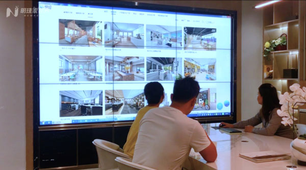 ▲業(yè)務(wù)人員在向客戶展示挑選產(chǎn)品在家居場景中的應(yīng)用效果