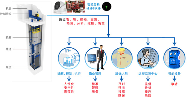 愛登堡人工智能綠色曳引驅動乘客電梯通過搭載先進傳感器、控制器、執(zhí)行器等裝置,結合信息通信、互聯(lián)網(wǎng)、大數(shù)據(jù)、云計算、傳感檢測等新技術,具備與人類智能(視覺、聽覺、感知、決策、交互、語言、執(zhí)行)相關的功能。