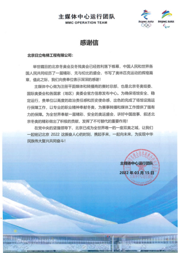 日立電梯還為第24屆北京冬季奧林匹克運(yùn)動(dòng)會(huì)兩大賽區(qū)6大場(chǎng)館、提供了超過(guò)200臺(tái)電扶梯產(chǎn)品,包括唯一新建冰上競(jìng)賽場(chǎng)館“冰絲帶”,并且在長(zhǎng)達(dá)兩個(gè)多月的駐點(diǎn)保障期間達(dá)成零故障護(hù)航目標(biāo),贏得冬奧組委的認(rèn)可。