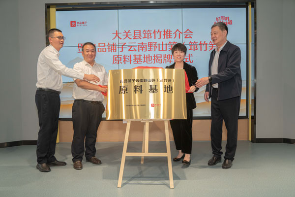 4月26日,中國(guó)食品工業(yè)協(xié)會(huì)副秘書(shū)長(zhǎng)徐堅(jiān),中共大關(guān)縣委常委、縣人民政府常務(wù)副縣長(zhǎng)張興,云南省農(nóng)業(yè)科學(xué)院農(nóng)產(chǎn)品加工研究所副所長(zhǎng)蘇火生,良品鋪?zhàn)庸煞萦邢薰靖笨偛?、供?yīng)鏈中心負(fù)責(zé)人劉玲出席“良品鋪?zhàn)釉颇弦吧焦S(筇竹筍)原料基地”揭牌儀式。