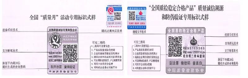 【全國(guó)“質(zhì)量月”活動(dòng)專(zhuān)用標(biāo)識(shí)】具有專(zhuān)屬的知識(shí)產(chǎn)權(quán)(經(jīng)中國(guó)版權(quán)保護(hù)中心審核,國(guó)家版權(quán)局于2015年7月16日對(duì)全國(guó)“質(zhì)量月”活動(dòng)專(zhuān)用標(biāo)識(shí)頒發(fā)了《作品登記證書(shū)》,登記號(hào):國(guó)作登字-2015-L-00188457),基本規(guī)格為5cm2,集電話電碼防偽查詢(xún)、二維碼在線掃描、微信驗(yàn)證、網(wǎng)站查詢(xún)等多種功能于一體,綜合運(yùn)用了紐索幣紋、微縮文字、熒光激發(fā)油墨等多種防偽技術(shù);專(zhuān)用標(biāo)識(shí)加貼在企業(yè)產(chǎn)品或包裝上,消費(fèi)者(用戶(hù))只需要用座機(jī)或手機(jī)電話撥打全國(guó)范圍內(nèi)均不需要加區(qū)號(hào)的特服號(hào)碼95105365或使用手機(jī)掃描二維碼或登陸網(wǎng)站(http://www.12365114.cn)就可直接查詢(xún)驗(yàn)證加貼專(zhuān)用標(biāo)識(shí)的產(chǎn)品為第三方質(zhì)量專(zhuān)業(yè)機(jī)構(gòu)權(quán)威證明的全國(guó)質(zhì)量誠(chéng)信優(yōu)秀典型企業(yè)生產(chǎn)(銷(xiāo)售)的質(zhì)量誠(chéng)信安全可靠好產(chǎn)品,形成企業(yè)自己獨(dú)有的比較優(yōu)勢(shì)。