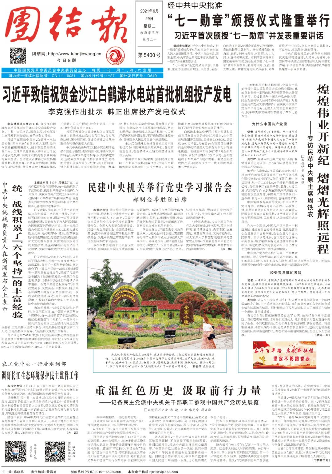《團結報》2021年6月29日1版 刊登此文