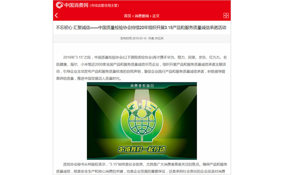 (備注:本新聞刊發(fā)于《中國質(zhì)量報(bào)》2019年3月15日刊第03版)