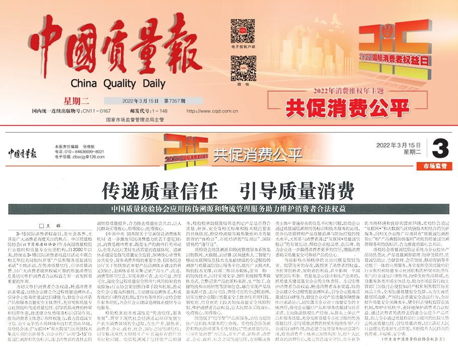 ——中國質(zhì)量檢驗(yàn)協(xié)會應(yīng)用防偽溯源和物流管理服務(wù)助力維護(hù)消費(fèi)者合法權(quán)益
