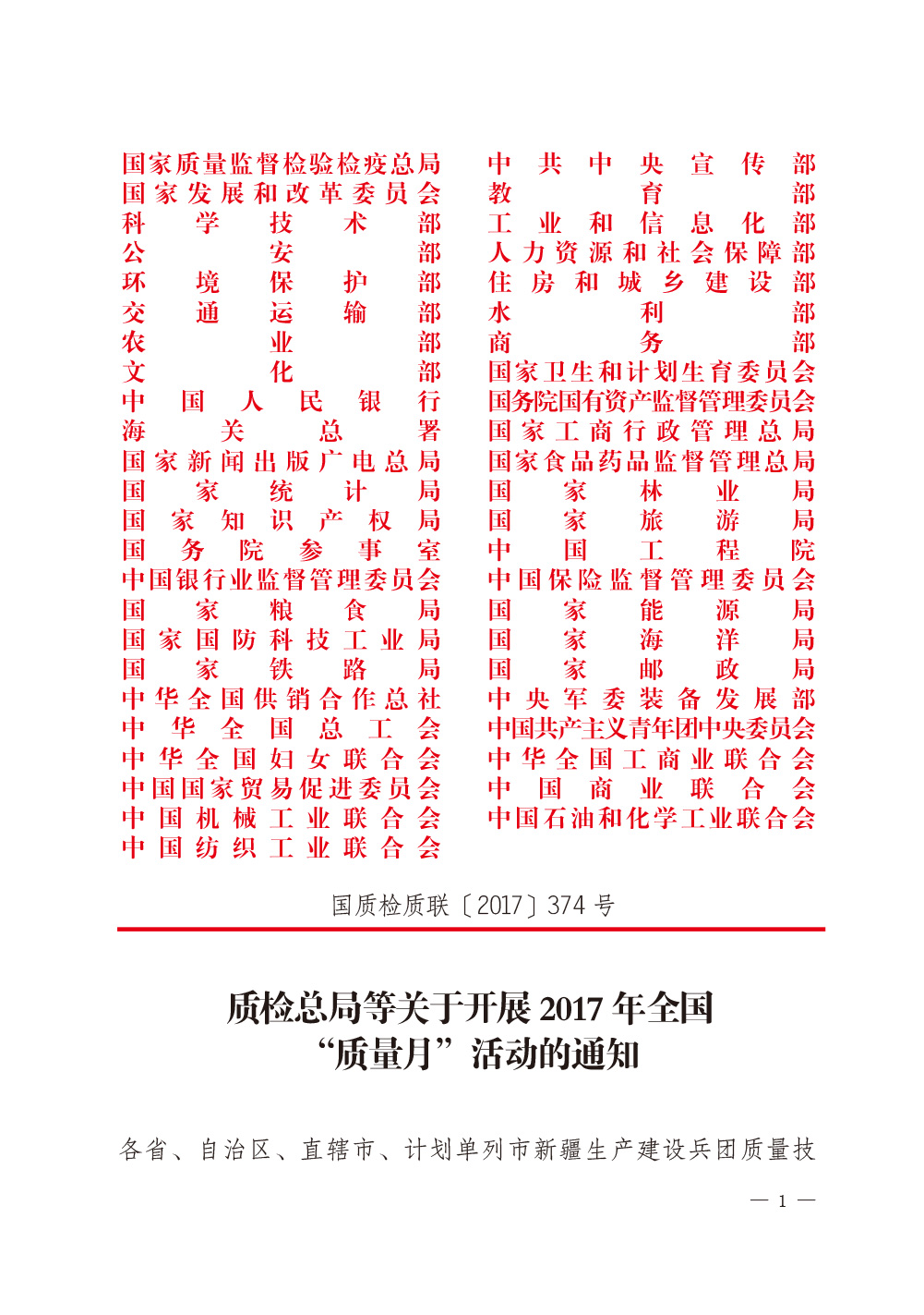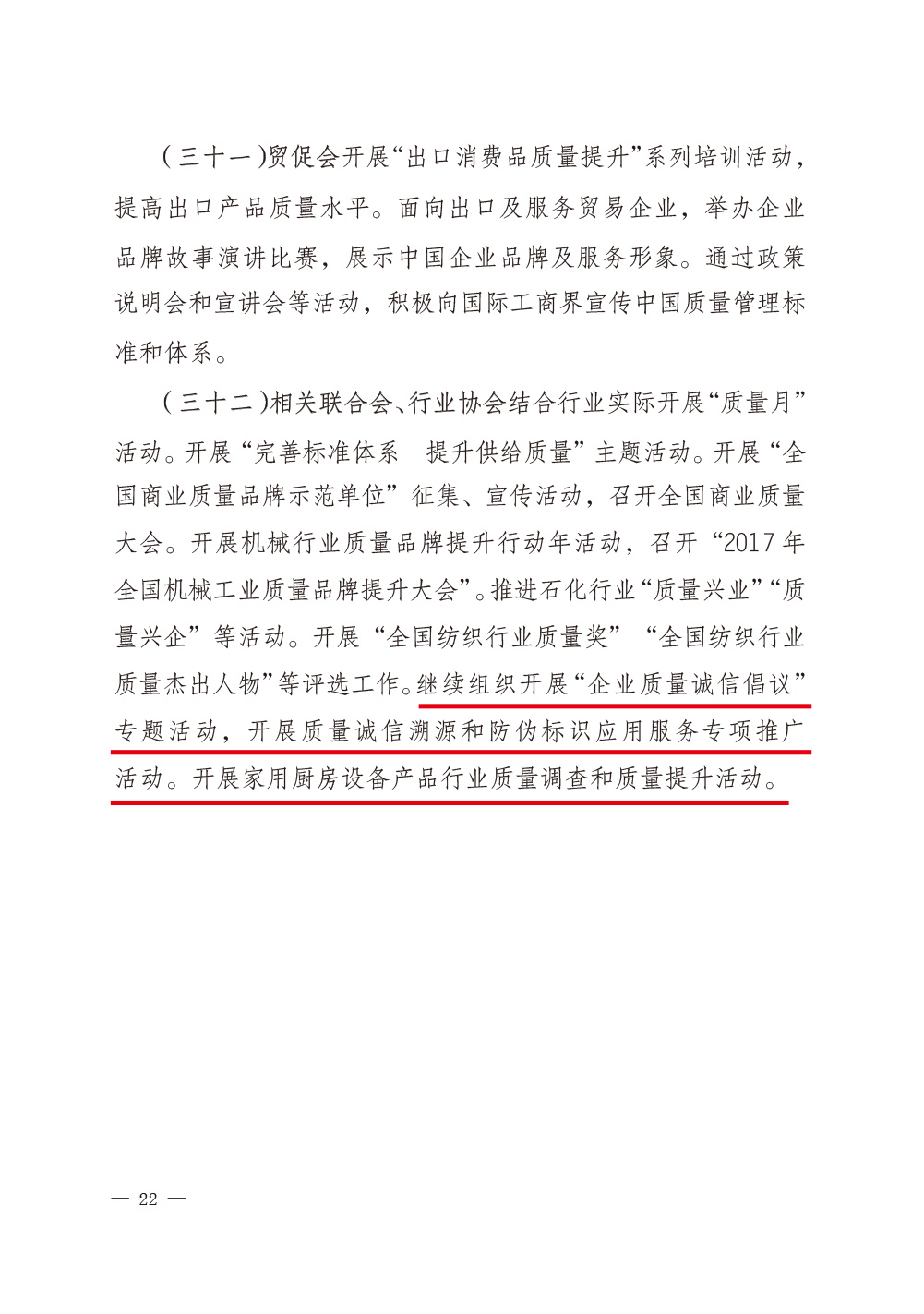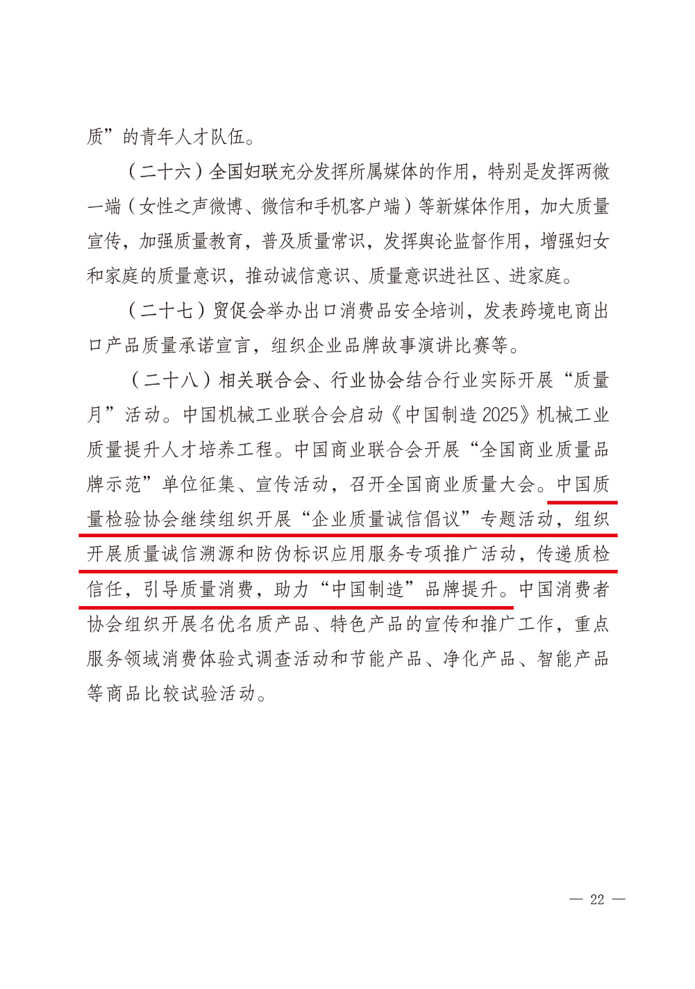 2017年8月23日,國(guó)家質(zhì)檢總局和中共中央宣傳部、國(guó)家發(fā)改委、科學(xué)技術(shù)部、工業(yè)和信息化部、公安部、農(nóng)業(yè)部、商務(wù)部、國(guó)家工商總局、國(guó)家食藥監(jiān)總局等47個(gè)單位(部門)聯(lián)合印發(fā)的《質(zhì)檢總局等關(guān)于開展2017年全國(guó)“質(zhì)量月”活動(dòng)的通知》(國(guó)質(zhì)檢質(zhì)聯(lián)〔2017〕374號(hào))再次明確安排部署中國(guó)質(zhì)量檢驗(yàn)協(xié)會(huì):繼續(xù)組織開展“企業(yè)質(zhì)量誠(chéng)信倡議”專題活動(dòng),開展質(zhì)量誠(chéng)信溯源和防偽標(biāo)識(shí)應(yīng)用服務(wù)專項(xiàng)推廣活動(dòng);同時(shí),還將中國(guó)質(zhì)量檢驗(yàn)協(xié)會(huì)服務(wù)工作核心價(jià)值“傳遞質(zhì)檢信任,引導(dǎo)質(zhì)量消費(fèi)”列入2017年全國(guó)“質(zhì)量月”活動(dòng)宣傳口號(hào)。