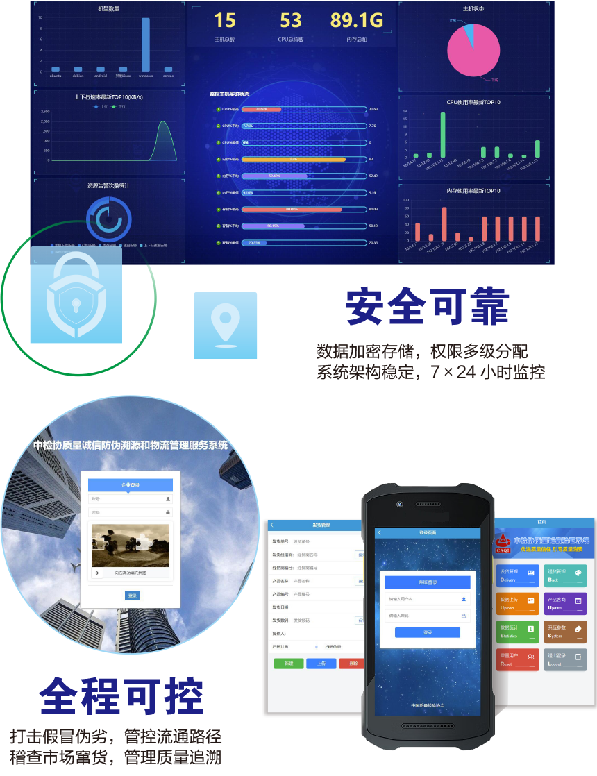 中國(guó)質(zhì)量檢驗(yàn)協(xié)會(huì)防偽溯源和物流管理服務(wù)系統(tǒng)(簡(jiǎn)稱中檢聯(lián)合質(zhì)量誠(chéng)信驗(yàn)證系統(tǒng))是以物聯(lián)網(wǎng)、大數(shù)據(jù)、云計(jì)算、區(qū)塊鏈和移動(dòng)互聯(lián)網(wǎng)技術(shù)為基礎(chǔ)建設(shè)的全過程防偽溯源與質(zhì)量誠(chéng)信驗(yàn)證服務(wù)平臺(tái),依托廣大技術(shù)機(jī)構(gòu)的技術(shù)支撐,應(yīng)用二維碼為載體,使用一物一碼防偽技術(shù),同時(shí)采用文字、圖片和視頻等多媒體方式,完整記錄產(chǎn)品的原料來源、生產(chǎn)加工、倉儲(chǔ)物流和市場(chǎng)銷售等詳細(xì)信息,融合實(shí)現(xiàn)產(chǎn)品質(zhì)量來源可查、去向可追、責(zé)任可究的全過程追溯,切實(shí)方便企業(yè)履行質(zhì)量安全主體責(zé)任并用科技、智能化、信息化的手段去加強(qiáng)質(zhì)量安全風(fēng)險(xiǎn)控制,維護(hù)消費(fèi)者合法權(quán)益,讓人民群眾買得放心、吃得放心、用得放心。