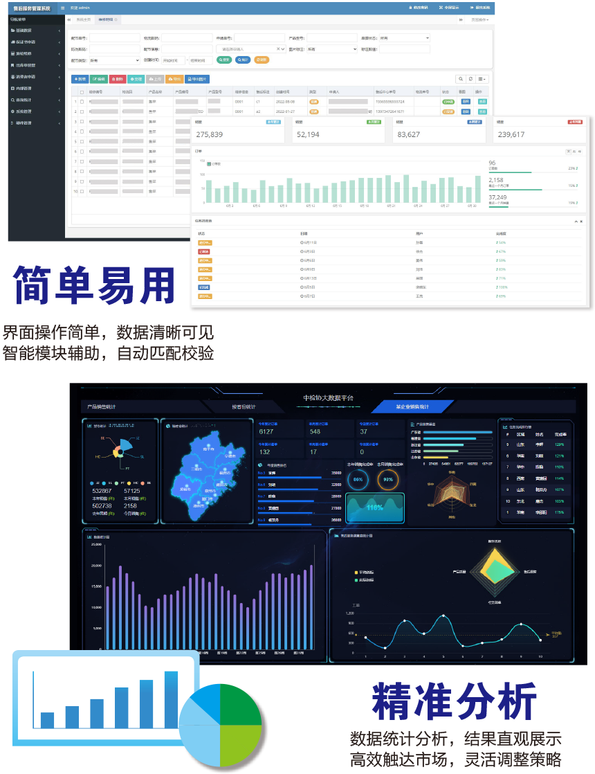 應(yīng)用說明:基于中國(guó)質(zhì)量檢驗(yàn)協(xié)會(huì)防偽溯源和物流管理服務(wù)系統(tǒng)的一品一碼,采用數(shù)字化的手段統(tǒng)一管理售后維修體系,解決目前企業(yè)存在的手動(dòng)工作量大,操作繁瑣和數(shù)據(jù)分散不方便統(tǒng)計(jì)等問題,串聯(lián)產(chǎn)品管理過程的每一個(gè)環(huán)節(jié),打通整個(gè)業(yè)務(wù)的數(shù)據(jù)鏈條,優(yōu)化工作內(nèi)容,提升工作效率。實(shí)現(xiàn)銷售單自動(dòng)導(dǎo)入、維修標(biāo)簽打印、過程統(tǒng)一管理、信息匯總操作、任務(wù)定時(shí)執(zhí)行、郵件通知、OCR智能識(shí)別圖像和維修價(jià)格自動(dòng)計(jì)算等功能,增強(qiáng)企業(yè)的市場(chǎng)綜合競(jìng)爭(zhēng)力。