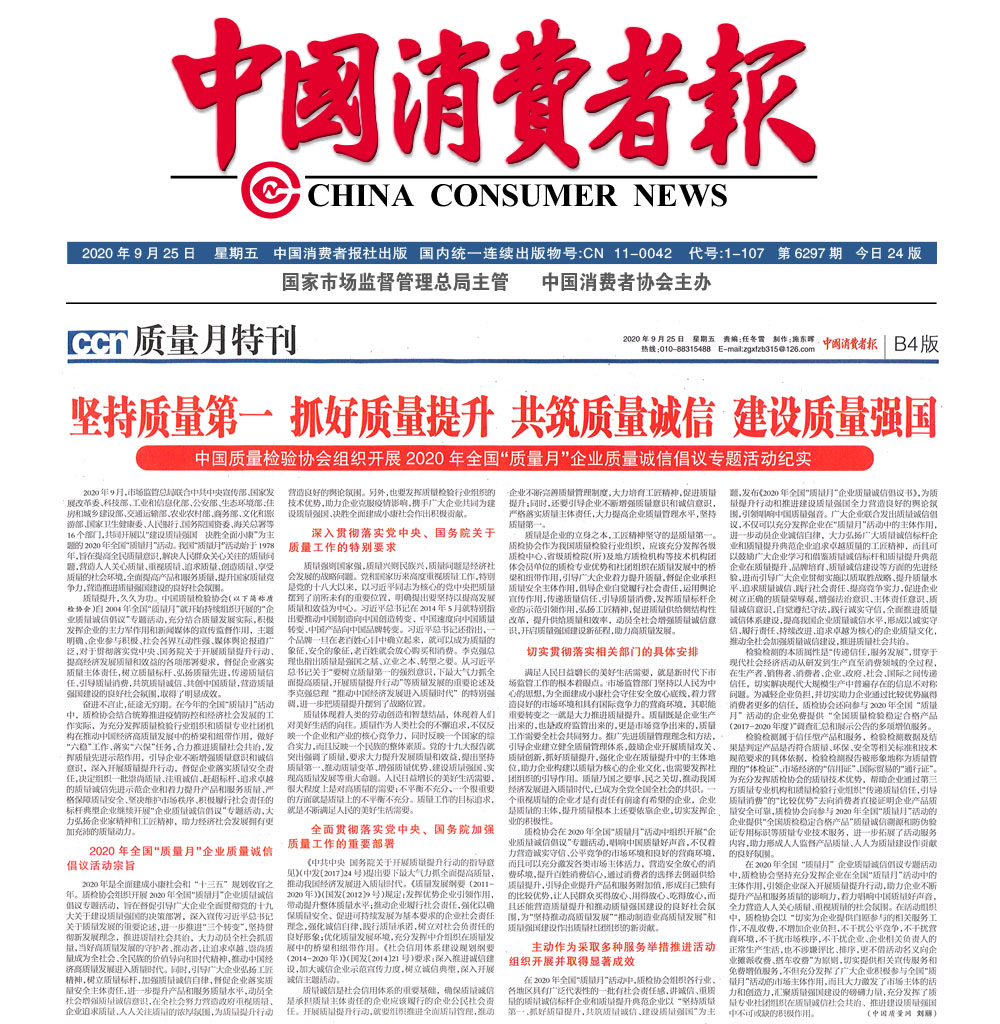 中國消費者報:堅持質(zhì)量第一 抓好質(zhì)量提升 共筑質(zhì)量誠信 建設(shè)質(zhì)量強國——中國質(zhì)量檢驗協(xié)會組織開展2020年全國“質(zhì)量月”企業(yè)質(zhì)量誠信倡議專題活動紀(jì)實